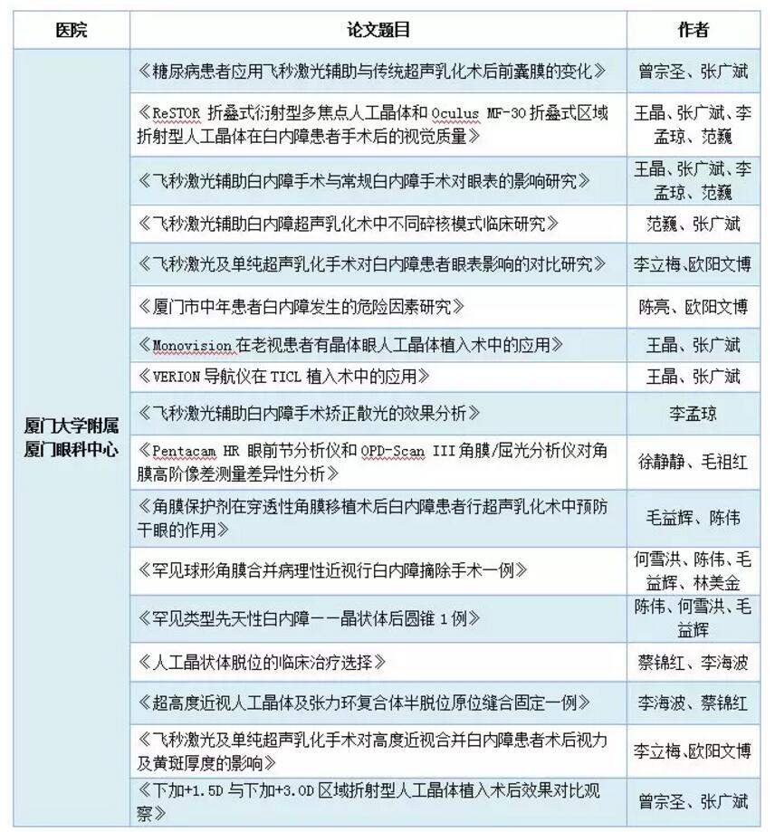廈門眼科中心憑借學科優(yōu)勢,專家們積極向大會投稿。經(jīng)評審,6篇論文被錄用為論文發(fā)言,17篇論文被錄用為電子壁報。
