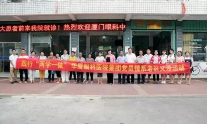 2016年6月25日,在紀(jì)念中國共產(chǎn)黨誕辰95周年之際,結(jié)合“兩學(xué)一做”,集團(tuán)黨委開展“重走紅軍路,送醫(yī)到老區(qū)”活動。華廈眼科醫(yī)院集團(tuán)黨委書記陳寶貴組織全體黨員到閩西革命老區(qū)龍巖連城新泉鎮(zhèn),慰問當(dāng)?shù)匮奂怖щy戶,并為300多位眼疾患者做篩查,深受老區(qū)群眾贊譽;
