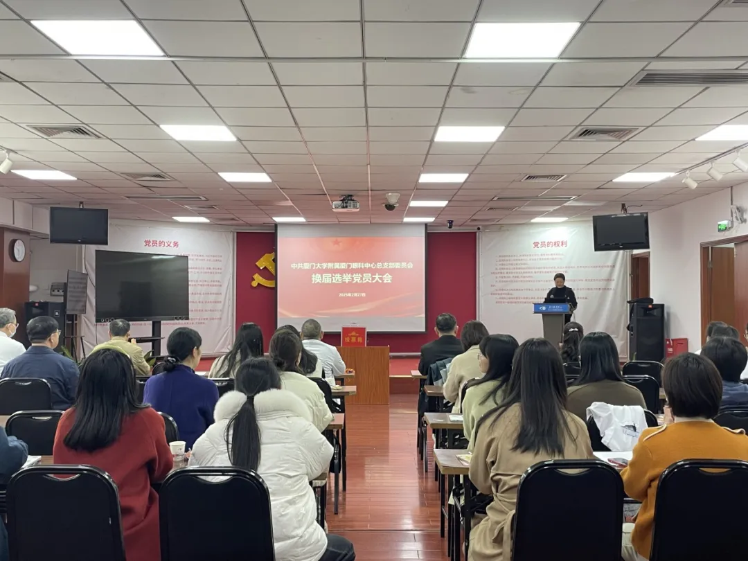 2月27日,廈門大學(xué)附屬廈門眼科中心召開全體黨員大會(huì),順利完成了黨總支換屆選舉工作。會(huì)議由黨委副書記、業(yè)務(wù)副院長、斜弱視與小兒眼科學(xué)科帶頭人潘美華同志主持,廈門眼科中心第一黨支部、第二黨支部共70余名黨員參加。