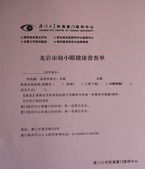 在這次的兒童眼疾普查活動中,廈門眼科中心對孩子們進行了視力篩查、電腦驗光、色別檢查、立體視覺檢查、斜弱視檢查、裂隙燈檢查、眼底檢查等數(shù)項專業(yè)的眼科檢查,同時還給孩子們進行了一堂護眼科普和科學用眼知識講座,讓孩子們真正了解自己的眼睛,同時給孩子們普及了如何正確保護視力的相關知識。