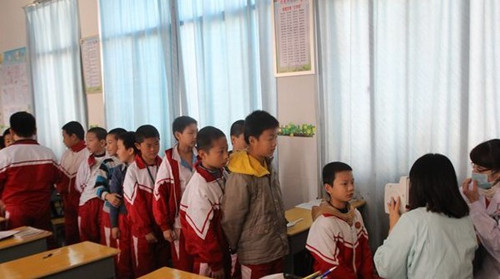 廈門眼科中心醫(yī)生為同學們檢查眼睛