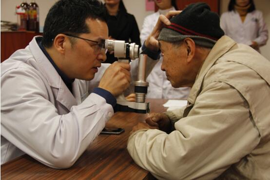 毛祖紅醫(yī)師現(xiàn)場(chǎng)為老年人朋友進(jìn)行眼睛篩查
