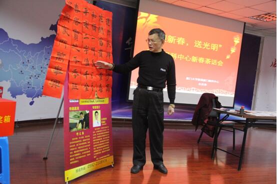 茶話(huà)會(huì)現(xiàn)場(chǎng)還特別邀請(qǐng)到廈門(mén)書(shū)協(xié)常務(wù)理事何文強(qiáng)老師,現(xiàn)場(chǎng)交流書(shū)法創(chuàng)作,并指導(dǎo)大家寫(xiě)春聯(lián)。全場(chǎng)活動(dòng)人數(shù)爆滿(mǎn),大家都很積極地參與了互動(dòng)。