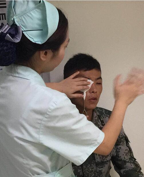 左眼幾近失明的小王雖然知道問題的嚴(yán)重性,但臺風(fēng)馬上就要登陸,他覺得自己應(yīng)該回到部隊與戰(zhàn)友們共同抗擊“莫蘭蒂”。任憑三樓護(hù)士長王芬琴怎么勸,小王還是堅持回部隊繼續(xù)執(zhí)行任務(wù)。醫(yī)生只得先給小王做一些應(yīng)急處理,并叮囑他第二天一定要及時過來就醫(yī)。