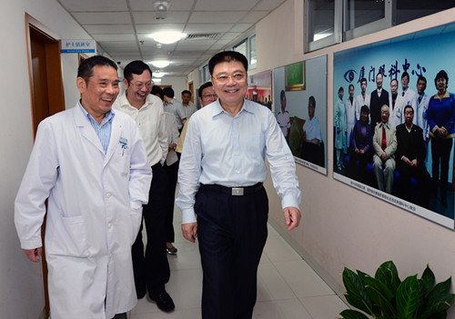 近日,省委常委、市委書記王蒙徽前往廈門眼科中心,看望了醫(yī)療團(tuán)隊(duì)和接受眼角膜捐贈(zèng)的康復(fù)患者。市領(lǐng)導(dǎo)鐘興國(guó)、國(guó)桂榮,衛(wèi)計(jì)委楊叔禹、洪豐穎、王挹青等領(lǐng)導(dǎo)隨同慰問。