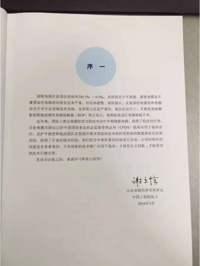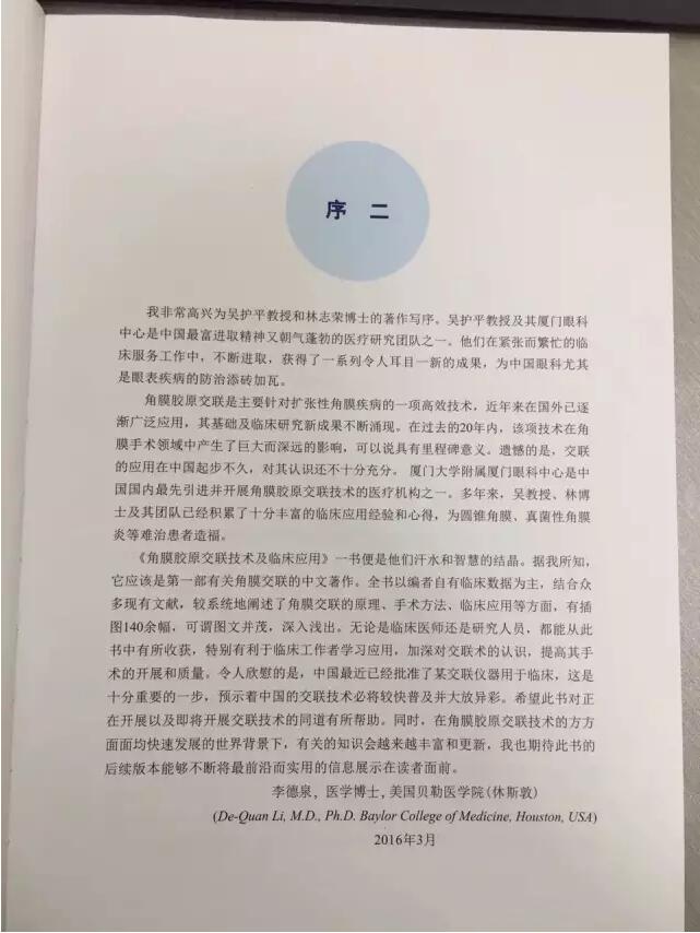 《角膜膠原交聯(lián)技術(shù)及臨床應(yīng)用》一書(shū)的出版受到了眾多國(guó)際眼科名家的認(rèn)可,并為此書(shū)寫(xiě)了序言。