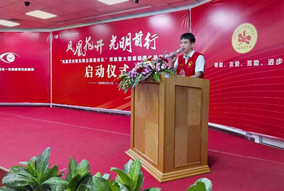 眼科醫(yī)院集團(tuán)黨委書記、鳳凰花“光明先鋒”志愿服務(wù)隊(duì)隊(duì)長陳逸恬,廈門眼科中心執(zhí)行總經(jīng)理姚鄭玲玲,廈門眼科中心運(yùn)營總監(jiān)王劍鋒,廈門眼科中心眼表及角膜病專科商旭敏博士作為志愿者代表參與儀式。