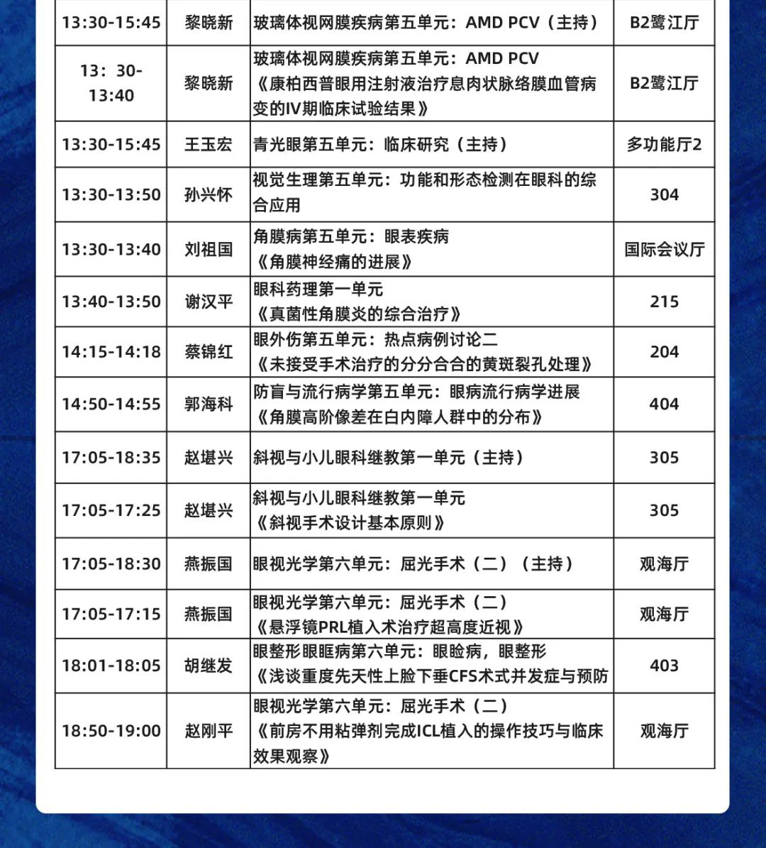 數(shù)十位廈門眼科中心專家受邀大會發(fā)言,涵蓋專題發(fā)言、論文發(fā)言、討論點評等。他們將圍繞眼科臨床診療新技術(shù)、新的防治措施以及科研、教學(xué)等方面的新進展暢所欲言,多角度、多學(xué)科、多元化為眼科同道獻上一場學(xué)術(shù)盛宴。