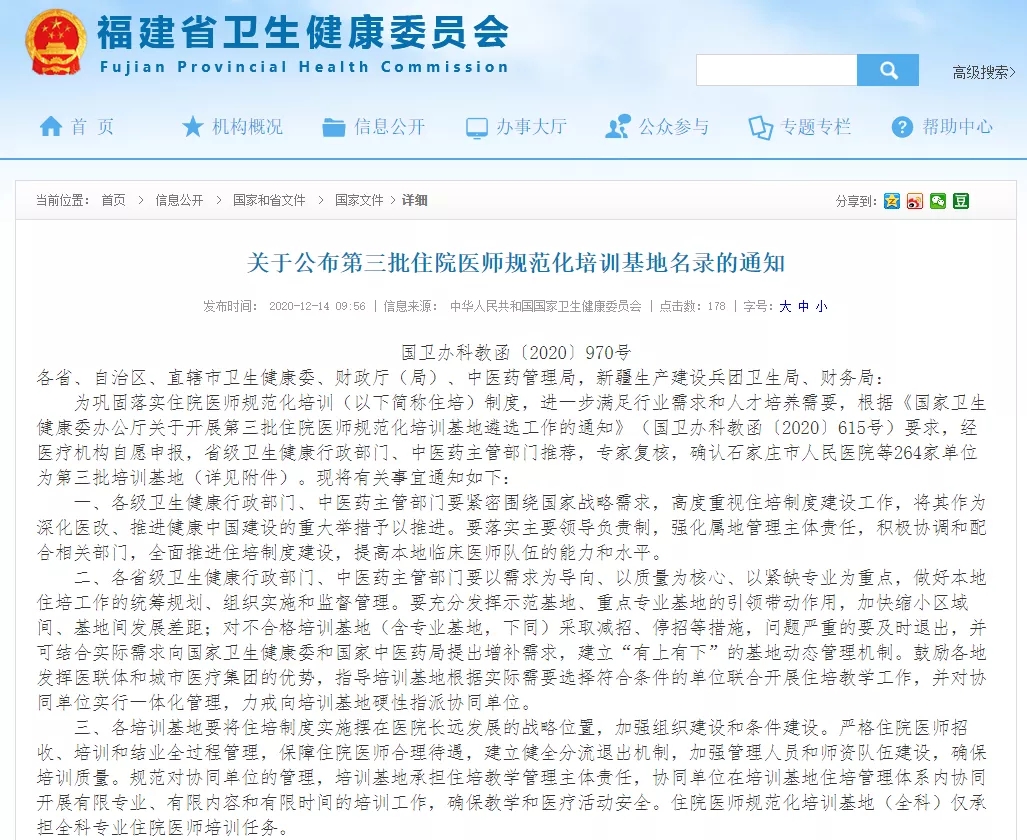 近日,根據(jù)國家衛(wèi)生健康委員會辦公廳、財政部辦公廳、國家中醫(yī)藥管理局辦公室聯(lián)合發(fā)布的《關(guān)于公布第三批住院醫(yī)師規(guī)范化培訓(xùn)基地名錄的通知》(國衛(wèi)辦科教函[2020]970號)文件,確認(rèn)廈門大學(xué)附屬廈門眼科中心成為第三批國家級住院醫(yī)師規(guī)范化培訓(xùn)基地。
