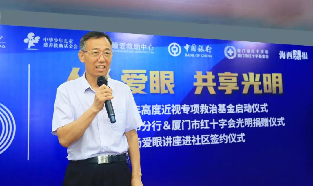 廈門市衛(wèi)生健康委員會(huì)、廈門市紅十字會(huì)、廈門市關(guān)心下一代工作委員會(huì)等部門領(lǐng)導(dǎo),原衛(wèi)生部近視眼實(shí)驗(yàn)室主任褚仁遠(yuǎn)教授,以及廈門眼科中心總院長(zhǎng)黎曉新教授,華廈