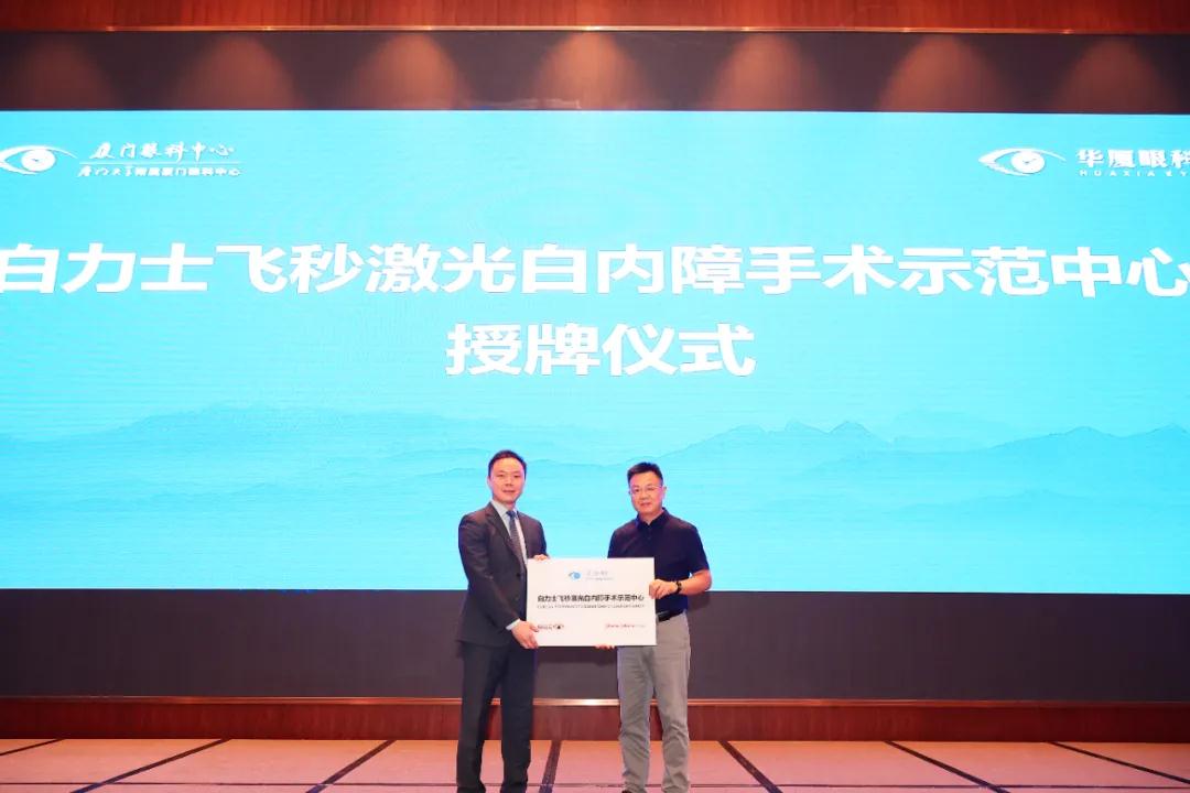 科技賦予光明力量,點亮高清美好生活。在論壇開幕式上同步舉行強生眼力健“Catalys白力士”眼科飛秒激光治療機開機發(fā)布會。強生眼力健中國區(qū)“飛秒激光眼表”事業(yè)部負責人宋漢崴為廈門眼科中心授予白力士飛秒激光白內障手術應用中心、白力士飛秒激光白內障手術示范中心牌匾。“Catalys白力士”飛秒激光治療系統(tǒng)廣泛應用于全球,該系統(tǒng)于6月在廈門眼科中心先行裝機落戶,此回正式開機,標志著廈門眼科中心在白內障無刀、智能新時代上再迎來新的里程碑。