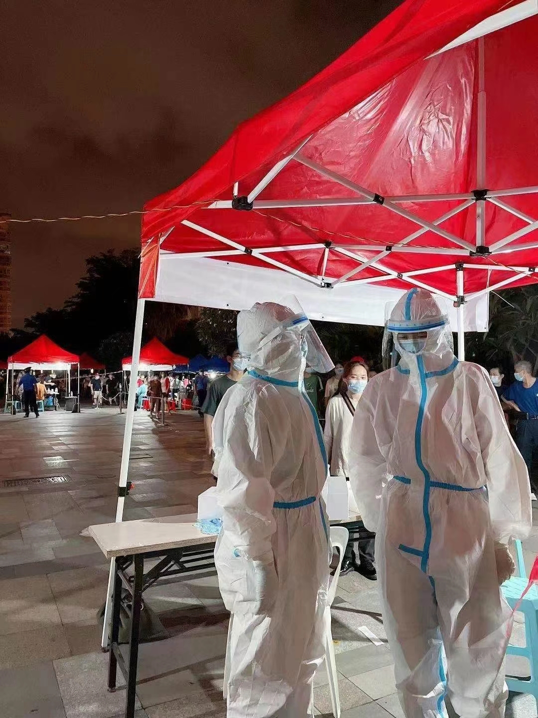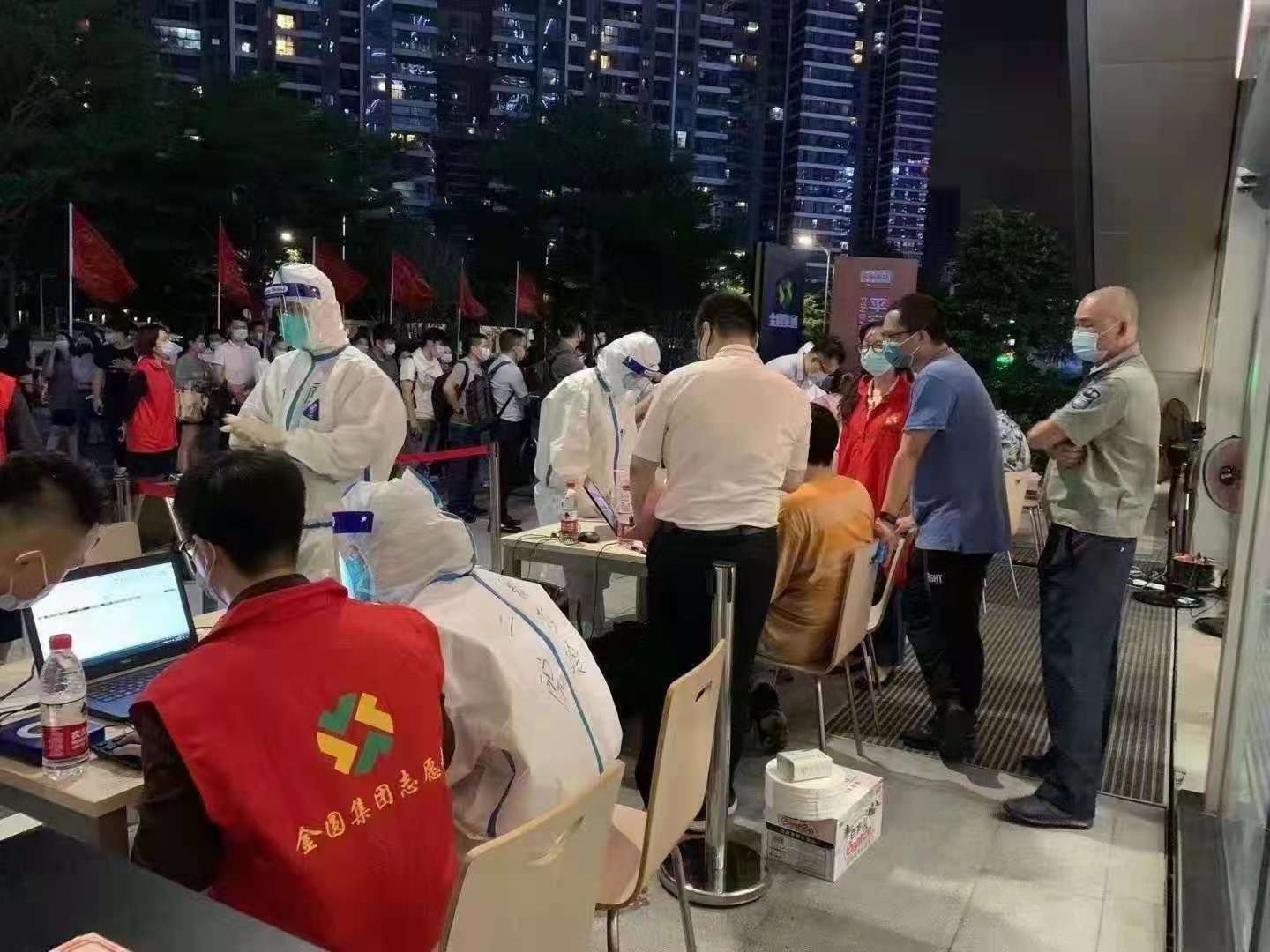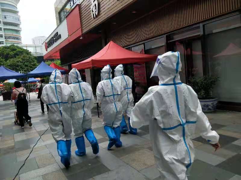 多名醫(yī)護(hù)人員緊急趕赴一線,參與核酸檢測工作