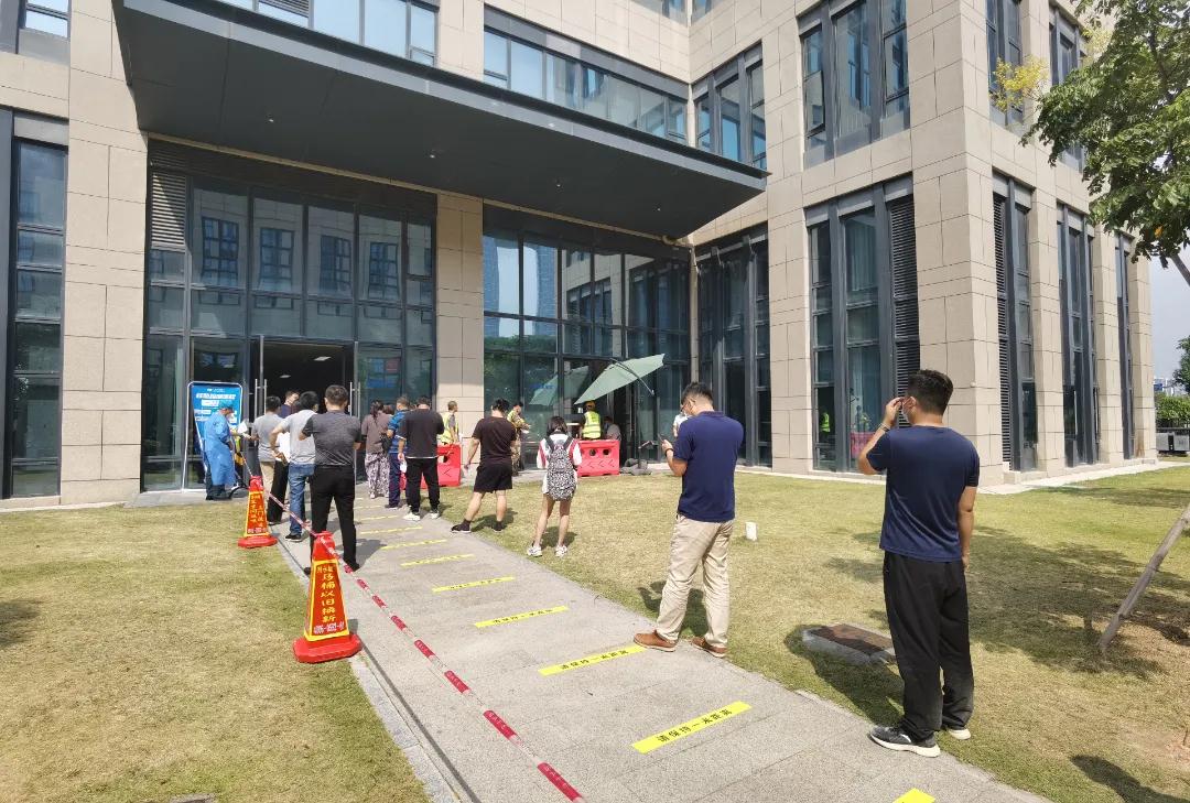 在接到支援指令后,廈門眼科中心高速重視、再次緊急行動。“我有經(jīng)驗(yàn),我報名!”“我參加!”9月18日一早,80名醫(yī)護(hù)人員迅速集結(jié),披甲上陣相繼出發(fā)前往深田、康樂、萬壽、燦坤文創(chuàng)園等社區(qū)開展第二輪核酸檢測工作。
