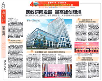 恰逢廈門經(jīng)濟特區(qū)隆重慶祝建設40周年,乘著改革開放的東風,廈門眼科中心與特區(qū)同頻共振,著力提升醫(yī)療水平、服務水平、人才培養(yǎng)及科研創(chuàng)新水平。廈門日報、廈門晚報、海西晨報、海峽導報等媒體進行專題報道。