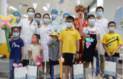 ▲小兒眼科醫(yī)護(hù)團(tuán)隊(duì)與孩子合影