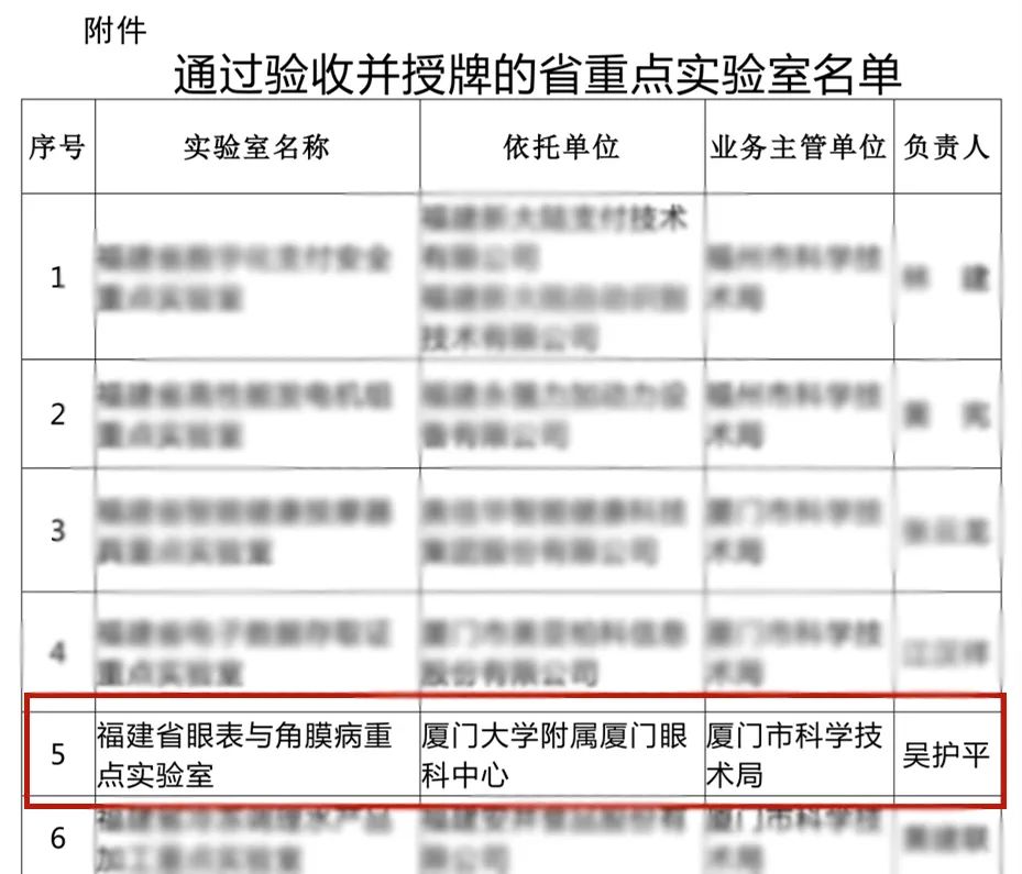 日前,福建省科學(xué)技術(shù)廳對(duì)18家省重點(diǎn)實(shí)驗(yàn)室(企業(yè)類)開(kāi)展了驗(yàn)收工作,經(jīng)過(guò)層層嚴(yán)格評(píng)選,充分評(píng)估和集體調(diào)研后,我院建設(shè)的眼表與角膜病重點(diǎn)實(shí)驗(yàn)室成功通過(guò)驗(yàn)收并授牌!實(shí)驗(yàn)室依托三甲??漆t(yī)院雄厚的醫(yī)療實(shí)力,圍繞疑難眼病開(kāi)展應(yīng)用基礎(chǔ)、轉(zhuǎn)化和臨床研究,旨在打造引領(lǐng)同類學(xué)科向上向前的科技力量,建成國(guó)際一流的疑難眼表與角膜疾病科研、檢測(cè)與診治中心。