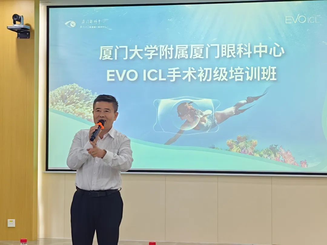廈門眼科中心業(yè)務院長王騫教授出席開班儀式并致辭,就本次培訓目的進行深刻闡釋,鼓勵各位學員勤思善學、奮發(fā)進取,不斷完善自我,提高屈光手術(shù)技術(shù)水平,共促屈光學科持續(xù)發(fā)展,聚力呵護群眾眼光明。