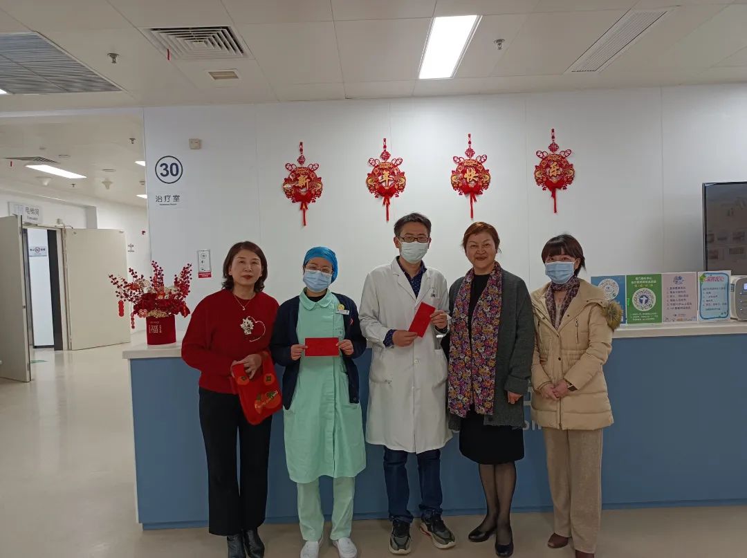 隨后,院領導一行來到病區(qū)慰問住院病患及家屬,為他們送去節(jié)日的問候和美好的祝福。院領導詳細了解住院患者的病情和治療情況,鼓勵他們積極配合治療,安心養(yǎng)病,早日與家人團聚。暖意流動,泛起幸福的漣漪,真誠的關懷讓病患和家屬們倍感溫暖。