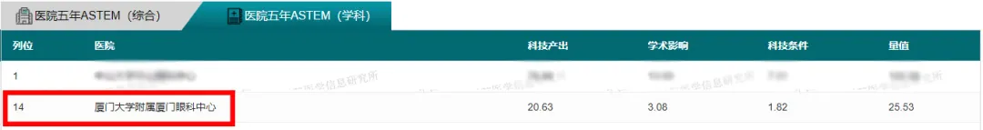 此次廈門(mén)眼科中心同時(shí)收獲兩份榜單前十五名,充分凸顯了廈門(mén)眼科中心在科研創(chuàng)新方面的成績(jī),也是我院科研創(chuàng)新成果留下亮眼足跡,并獲業(yè)內(nèi)廣泛認(rèn)可的證明。