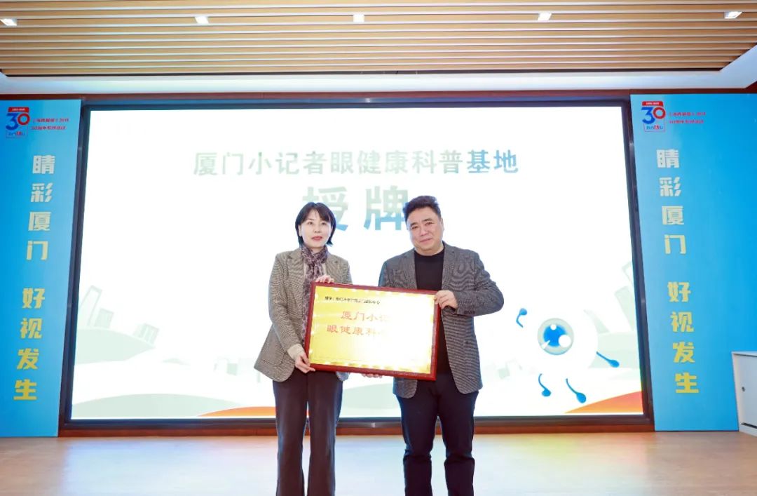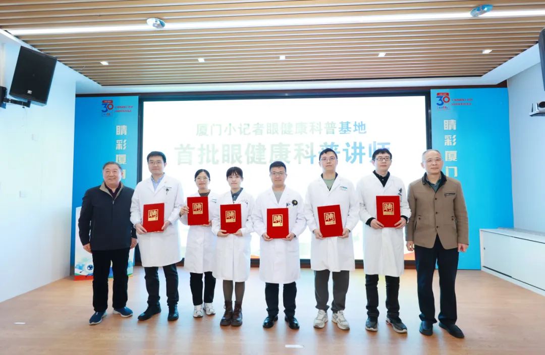 廈門市龍湫亭實驗學(xué)校、廈門市金林灣實驗學(xué)校、廈門雙十中學(xué)湖里分校、廈門市蔡塘學(xué)校和廈門金安教育集團金安校區(qū)成為廈門小記者眼健康科普基地首批成員單位,他們希望讓小記者化身眼健康科普“小使者”,通過研學(xué)實踐等活動,將愛眼護眼知識傳遞給更多同齡人,推動近視防控關(guān)口前移,形成“家庭-學(xué)校-醫(yī)院-媒體”協(xié)同聯(lián)動的眼健康宣傳網(wǎng)絡(luò)。
