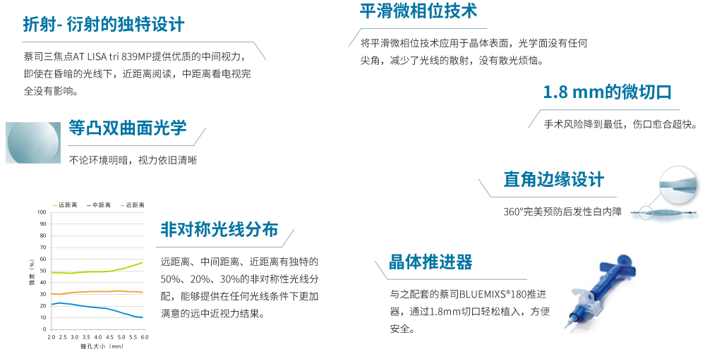 提供三個焦點,覆蓋了距離范圍,將白內(nèi)障、老花眼術(shù)后遠、中、近全程優(yōu)視力變?yōu)楝F(xiàn)實。