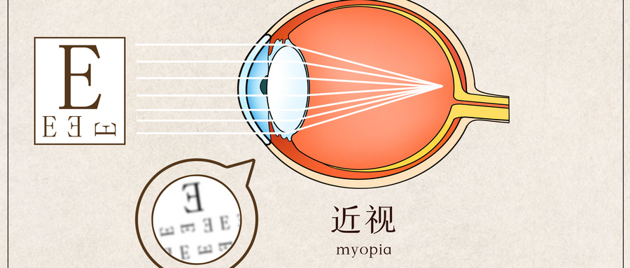 當(dāng)角膜和晶狀體曲率過大或者眼球太長,光線聚焦在視網(wǎng)膜前,此時稱為近視。這時候看近沒問題,看遠不清楚。