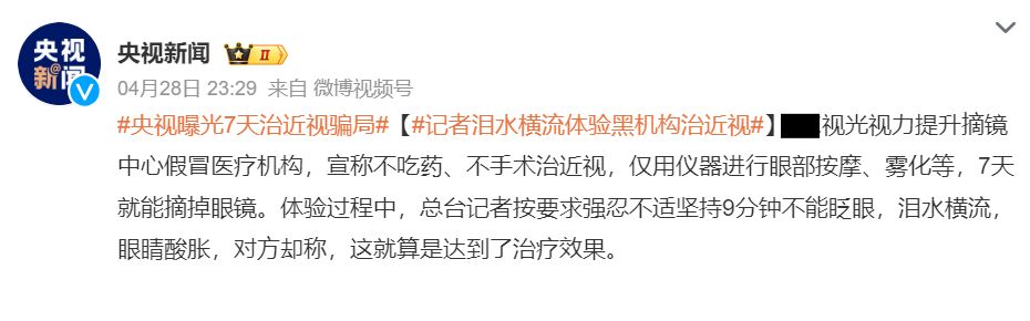 近日,某視光視力提升摘鏡中心”的機(jī)構(gòu)自稱在全國400多個(gè)城市有1600多家門店,宣稱不吃藥、不手術(shù)治近視,僅僅用他們研制的“神藥”“神秘儀器”進(jìn)行眼部的按摩、涂抹、霧化等,7天就能摘掉眼鏡。
