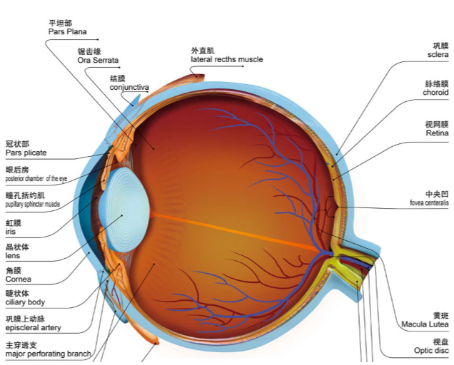 3.視網(wǎng)膜脫離的范圍、有無(wú)累及黃斑區(qū)(有無(wú)累及黃斑區(qū),預(yù)后差別非常大,累及黃斑區(qū),視力急劇下降且以后看東西都會(huì)變形)