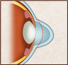 3、完成期:角膜明顯前突變薄,發(fā)展迅速,視力銳減。